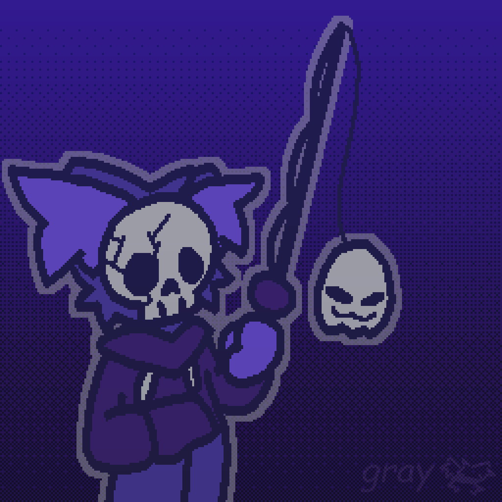 A headshot (kinda) for Gray's reaper form. Originally created as a reference for how their face should look, later repurposed as artwork for Candy Corn's visualizer.
