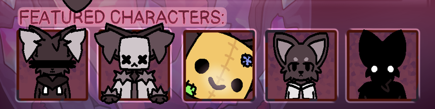 Headshots of five characters available to attack on Art Fight. The character art was done in Aseprite, as is most of my art, but the backgrounds for each box was done in Paint.NET.